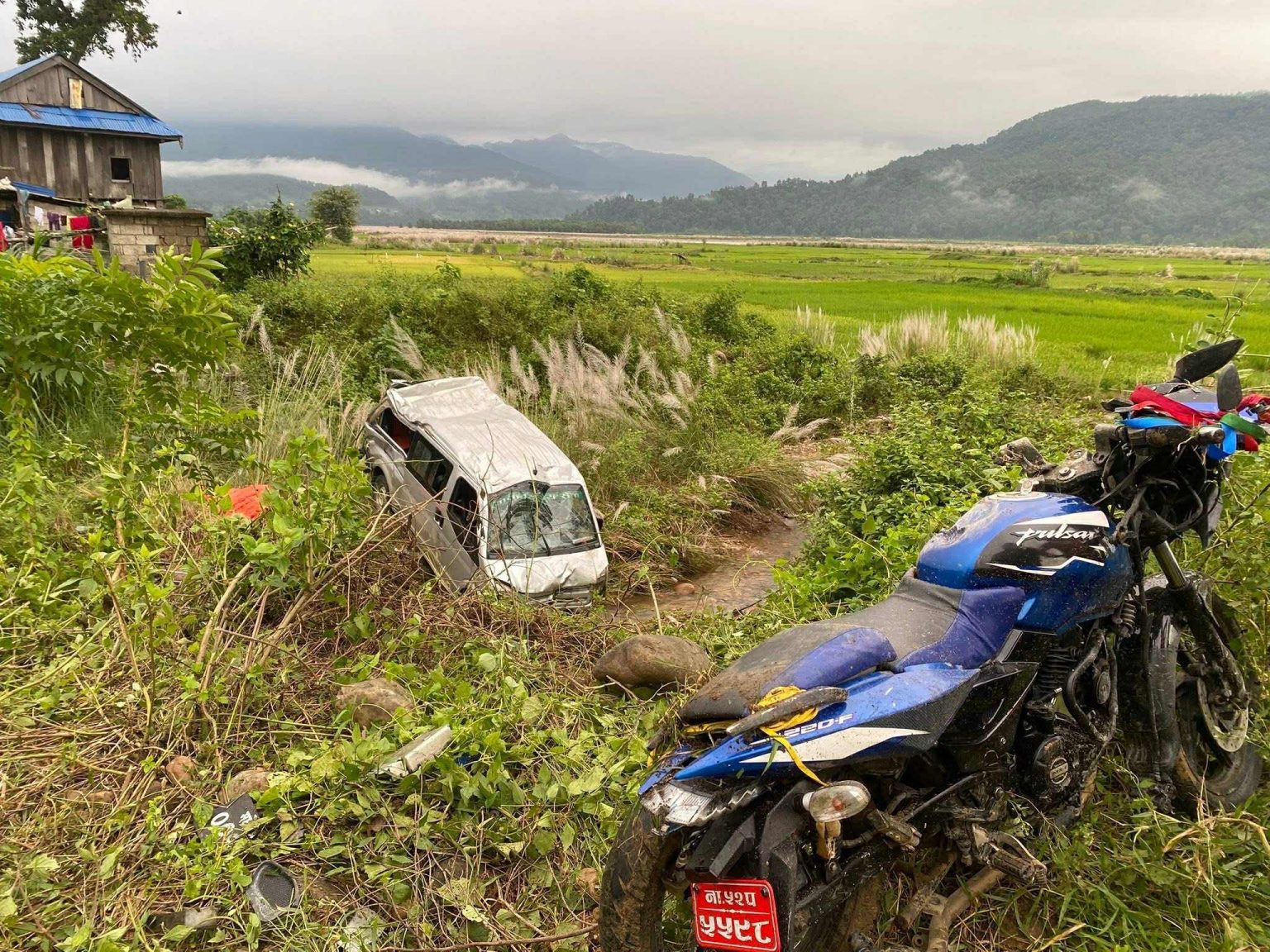 मकवानपुरमा ईभी गाडी र मोटरसाइकल ठोक्किँदा १४ जना घाइते