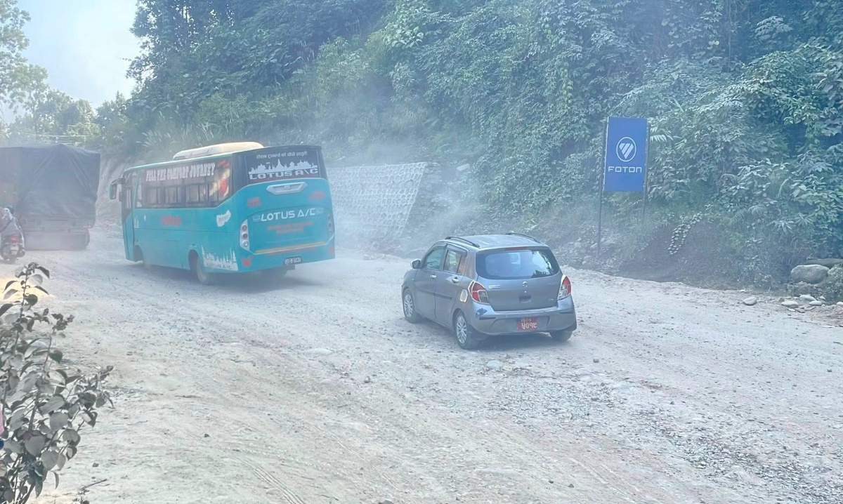 दाउन्ने सडकमा धुलोको त्रास, यात्रु हैरान