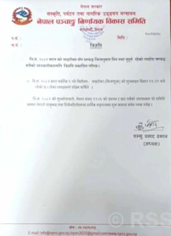 कात्तिक ६ गते बिहीबार बिहान ११ः३९ बजे भाइटीकाको साइत उत्तम रहेको समितिका अध्यक्ष प्रा शम्भुप्रसाद ढकालले राससलाई जानकारी दिनुभयो ।