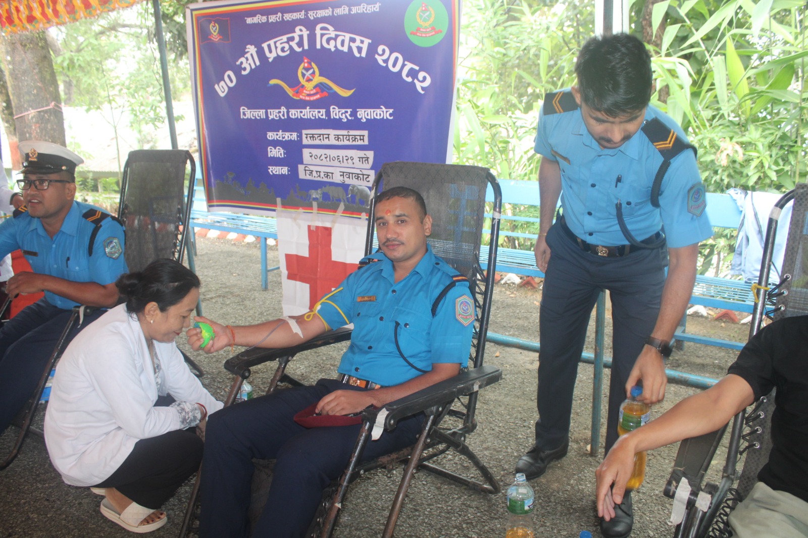 प्रहरी दिवसको अवसरमा त्रिशुली अस्पताल र नेपाल रेडक्रस सोसाइटी नुवाकोट जिल्ला शाखासँगको समन्वयमा प्रहरी कर्मचारीहरूको स्वास्थ्य परीक्षण र रक्तदान कार्यक्रम पनि सम्पन्न गरिएको छ। सो अवसरमा २७ जना प्रहरी कर्मचारी र २ जना स्थानीय नागरिक गरी २९ जनाले रक्तदान गरेका थिए।