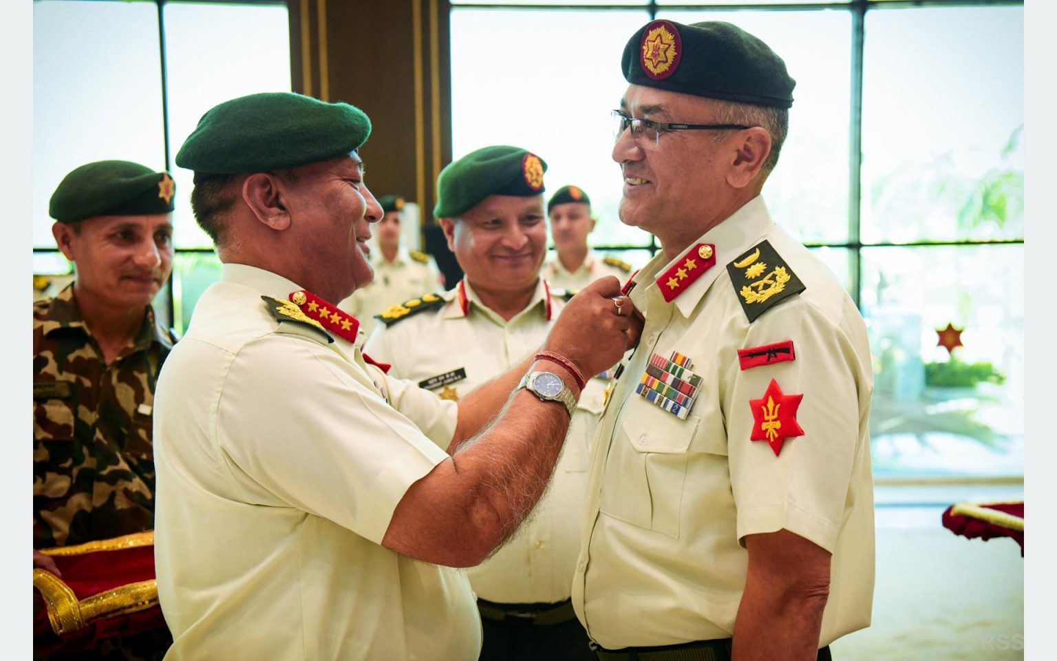 काठमाडौं,कात्तिक २ । प्रधानसेनापति अशोकराज सिग्देलले रथीमा पदोन्नति हुनुभएका गणेशकुमार श्रेष्ठलाई बढुवा भएको पदको दर्ज्यानी चिह्न प्रदान गर्नुभएको छ ।