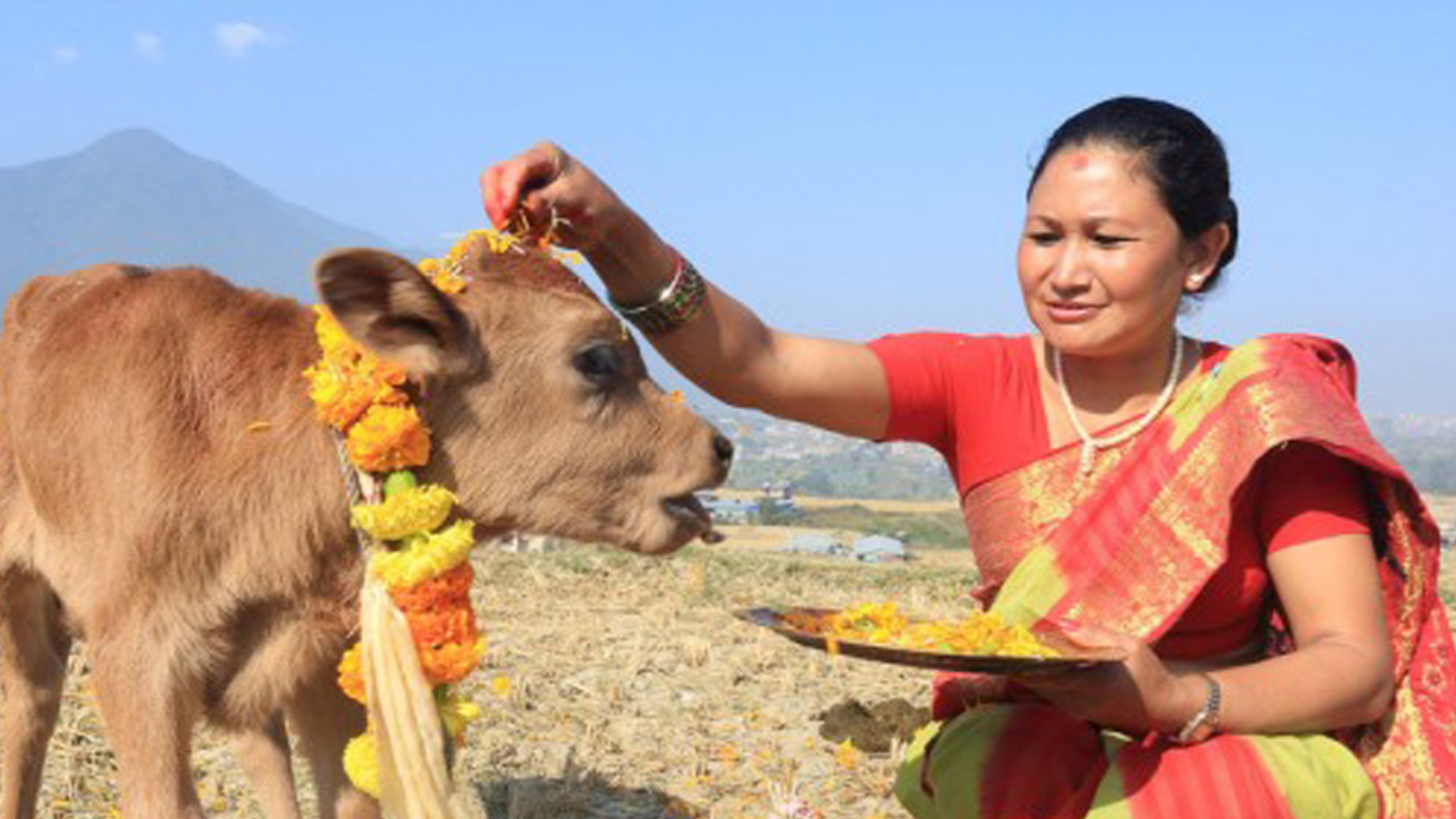 गाईपूजाद्वारा तिहारको पाँचौँ दिन मनाइँदै, गौमातालाई सम्मान र आस्था