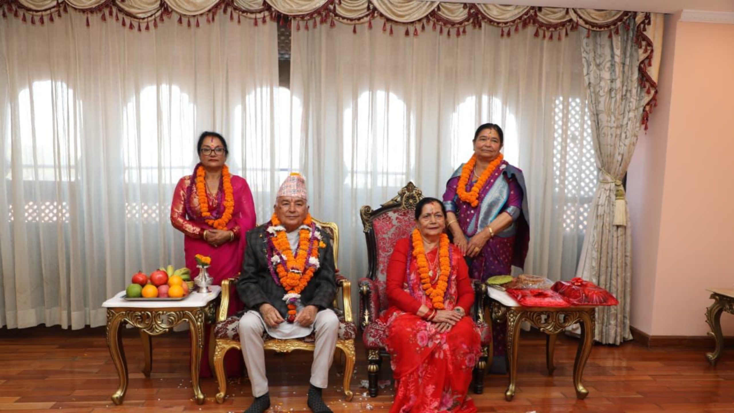 राष्ट्रपति पौडेलबाट शुभसाइतमा बहिनीहरूबाट तिहारको टीका ग्रहण