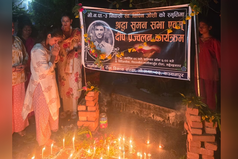 कञ्चनपुर,कात्तिक ९ — इजरायल–हमास युद्धका क्रममा हमासद्वारा अपहरणमा परी ज्यान गुमाएका नेपाली विद्यार्थी विपीन जोशीको सम्झनामा कञ्चनपुरको भीमदत्त नगरपालिका–३ स्थित मालिकार्जुन टोलमा ‘विपीन चोक’ नामकरण गरिएको छ।