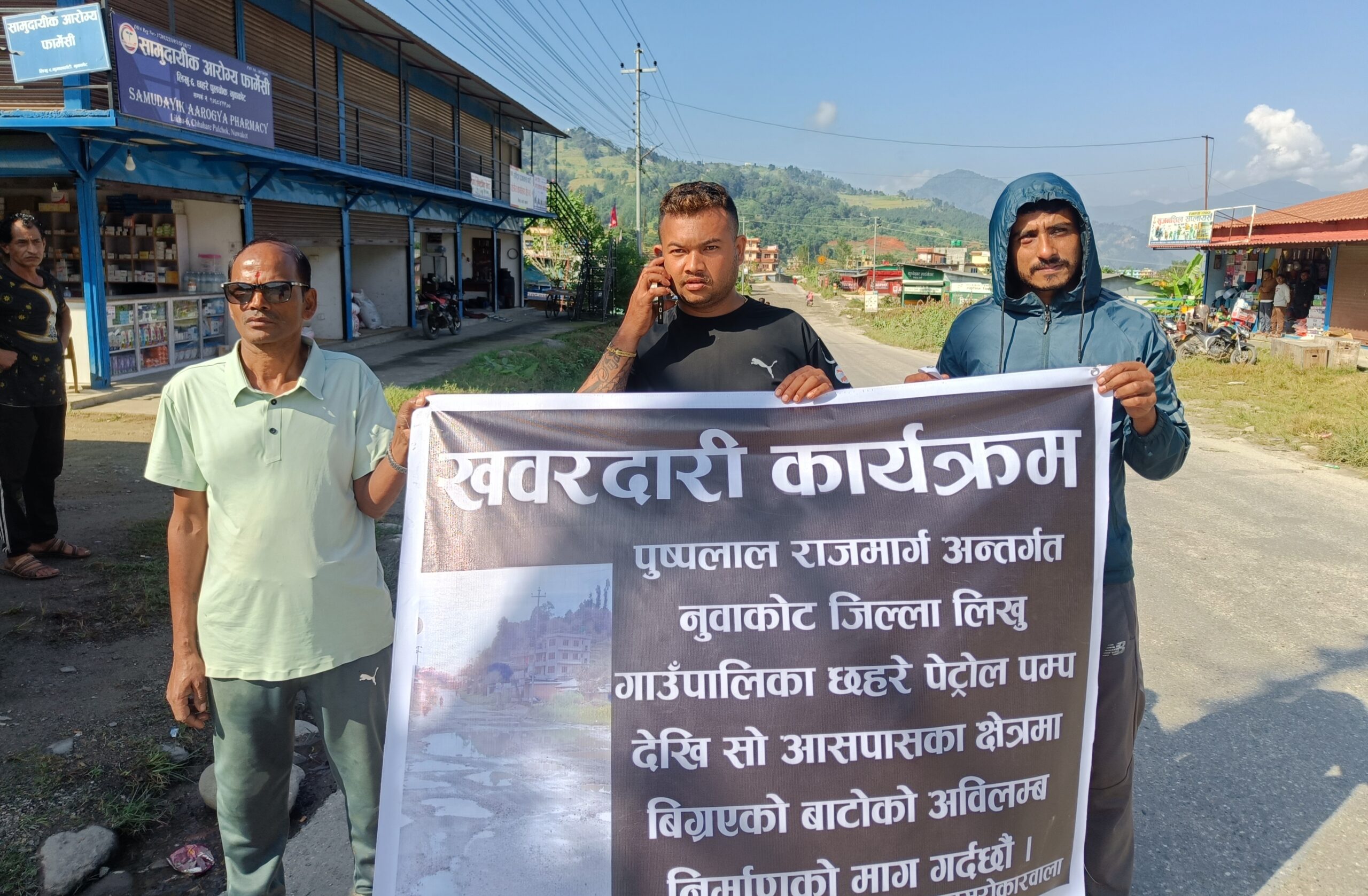 नुवाकोट,कात्तिक २१। पुष्पलाल राजमार्ग अन्तर्गत नुवाकोट जिल्लाको लिखु गाउँपालिका– वडा नम्बर ६ थान्सिङ स्थित छहरे पेट्रोल पम्पदेखि १०० मिटर आसपासका क्षेत्रमा लामो समयदेखि बिग्रिएको सडकको अवस्था झन् दयनीय बन्दै गएको भन्दै स्थानीय जनअधिकारकर्मी र सर्वसाधारणले तत्काल निर्माण तथा मर्मतको माग गरेका छन्।
