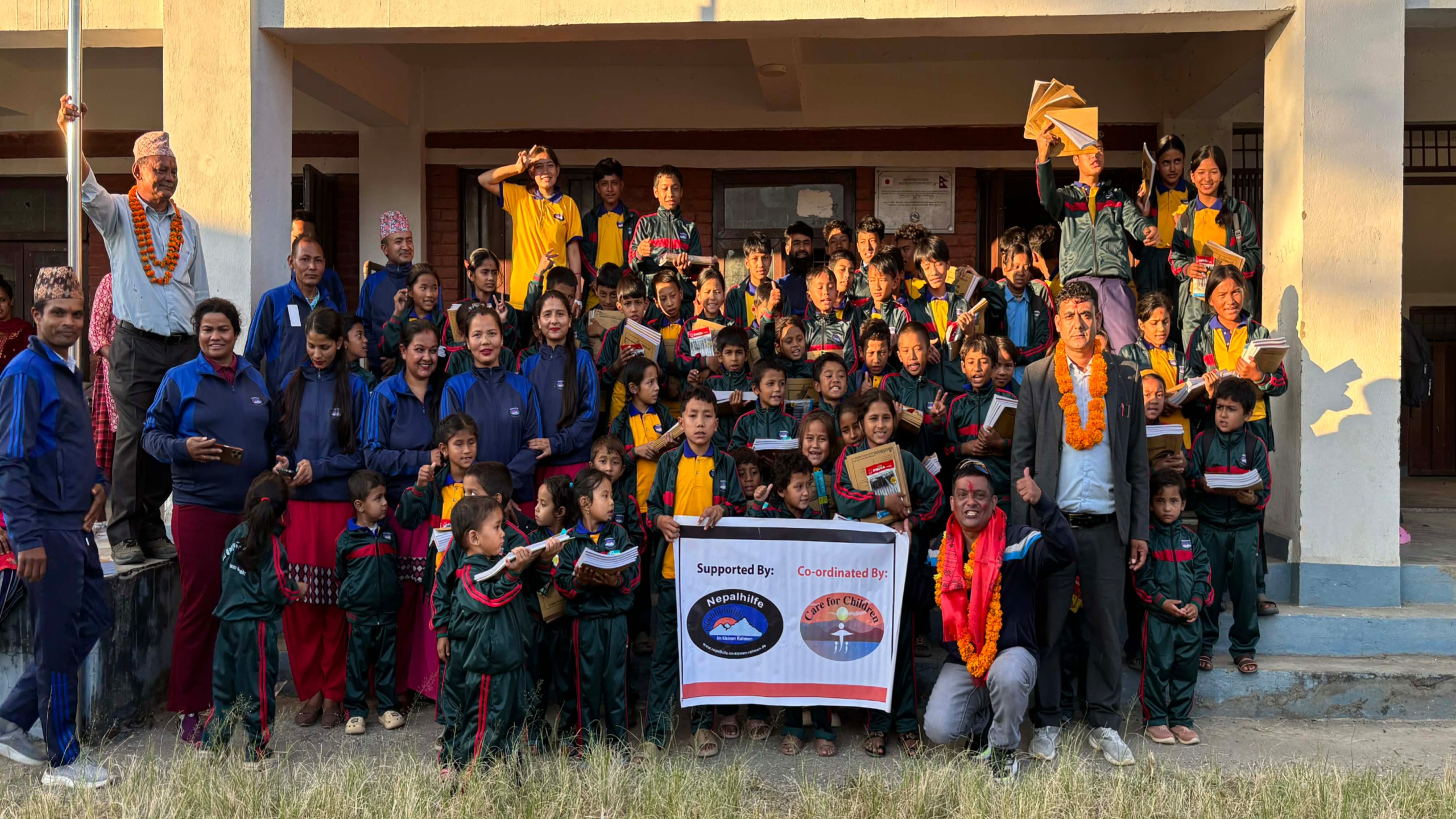 जर्मन संस्था ‘केयर फर चिल्ड्रेन’द्वारा नुवाकोटका विद्यालयमा न्यानो कपडा र शैक्षिक सामग्री वितरण