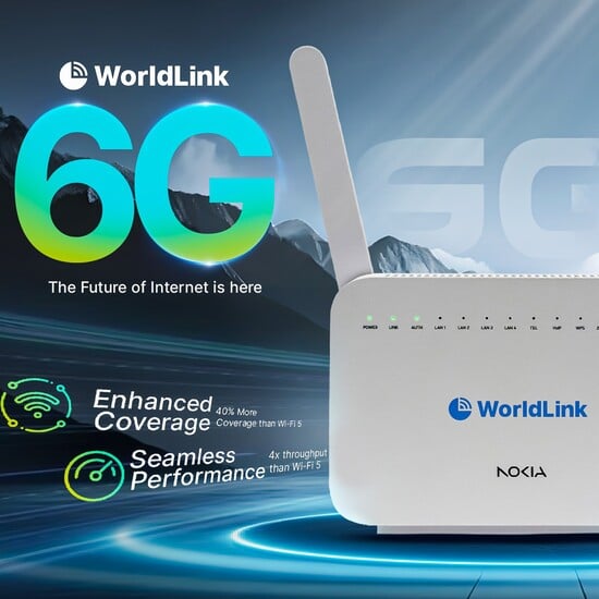 काठमाडौं,कात्तिक २७ । इन्टरनेट सेवा प्रदायक वल्र्डलिंक कम्युनिकेसन लिमिटेडले ‘वल्र्डलिंक 6G’ घोषणा गरेको छ । वल्र्डलिंकले नयाँ पुस्ताको इन्टरनेट प्रविधि सार्वजनिक गरेको हो ।