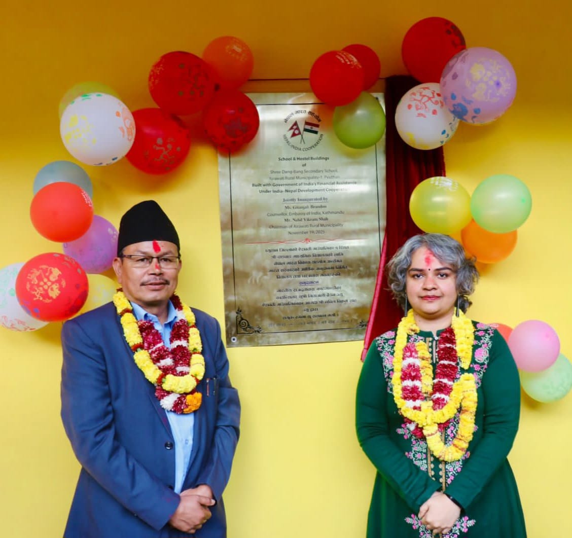 प्युठान,मंसिर ४ । भारत सरकारको आर्थिक सहयोगमा निर्मित लुम्बिनी प्रदेशको प्युठानको ऐरावती गाउँपालिका–१, अमिलीस्थित श्री दाङ वाङ माध्यमिक विद्यालयको विद्यालय एवम् छात्रावास भवनहरूको बुधबार भारतीय राजदूतावास, काठमाडौँका काउन्सलर गीताञ्जली ब्रैंडन र ऐरावती गाउँपालिकाका अध्यक्ष नविल विक्रम शाहले संयुक्त रूपमा उद्घाटन गर्नुभयो । उक्त कार्यक्रममा राजनीतिक प्रतिनिधि, सरकारी अधिकारी, समाजसेवी, विद्यालयका शिक्षक/शिक्षिका, विद्यार्थी र उनीहरूका अभिभावकको पनि उपस्थिति रहेको थियो ।
