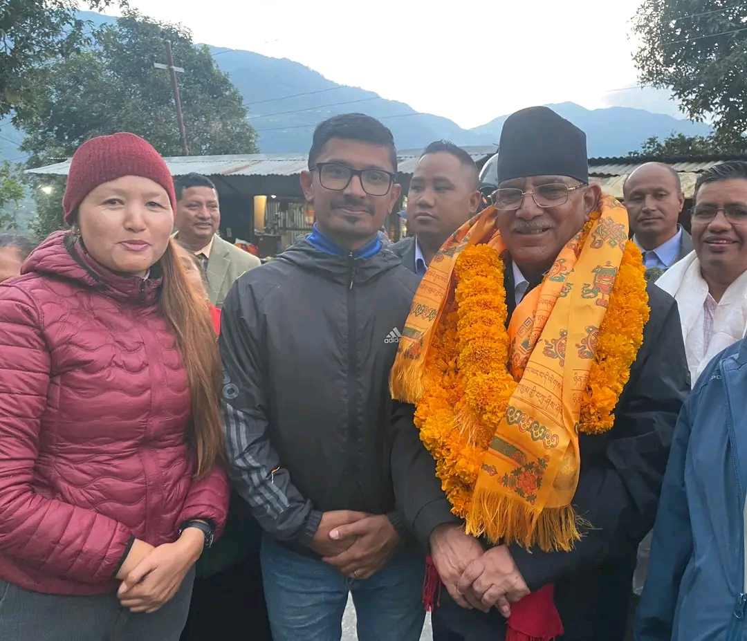 नुवाकोट,मंसिर ६ । — पूर्वप्रधानमन्त्री तथा नेपाली कम्युनिस्ट पार्टीका संयोजक पुष्पकमल दाहाल ‘प्रचण्ड’लाई नुवाकोटको शिवपुरीमा शनिबार भव्य स्वागत गरिएको छ। शिवपुरी गाउँपालिका–६ खोलेगाउँमा स्थानीय नेता र कार्यकर्ताले फूलमाला लगाएर स्वागत गरेका हुन्।
