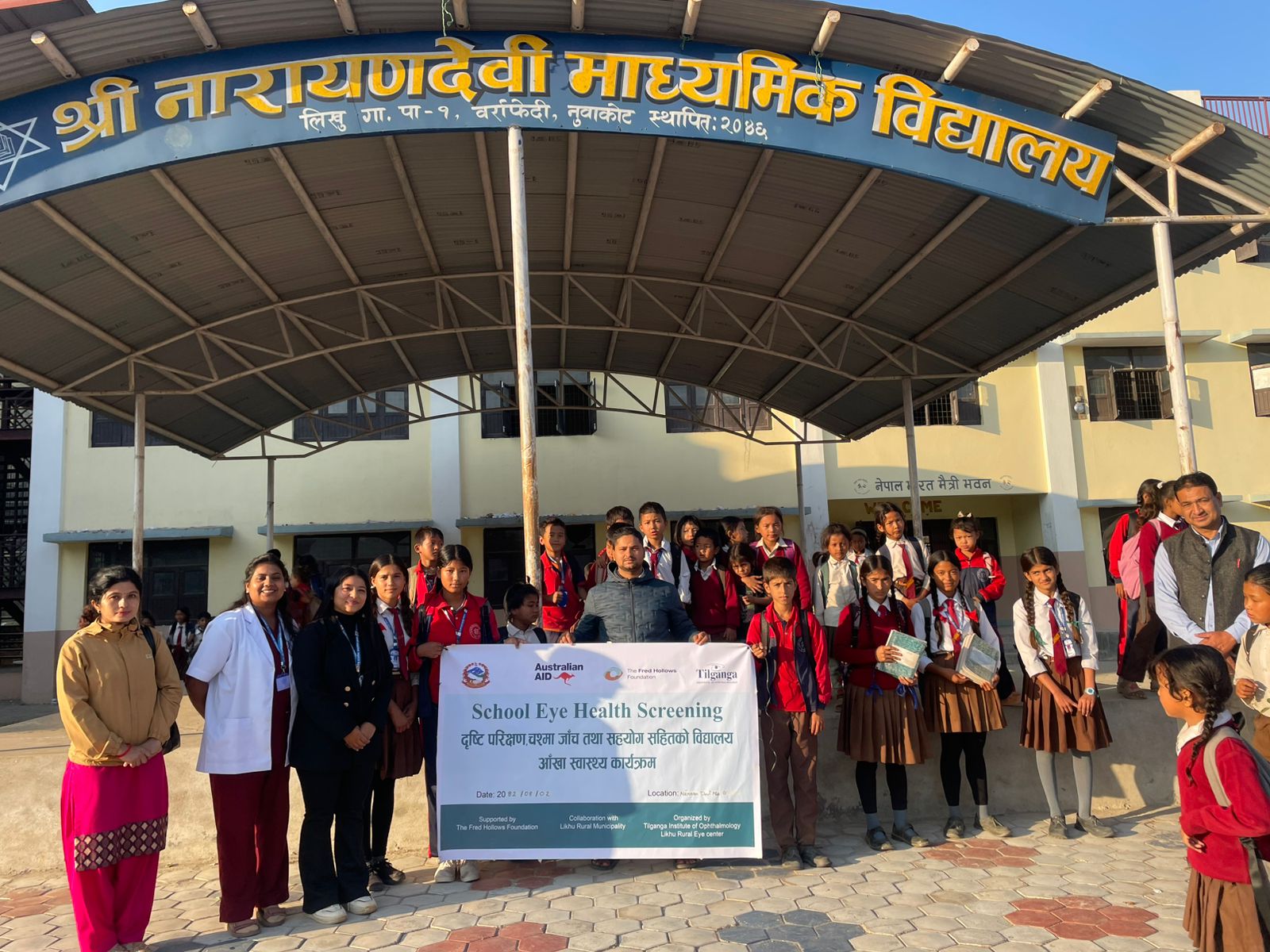 नुवाकोट, मंसिर ९— “विद्यालय आँखाजाँच कार्यक्रम” अन्तर्गत लिखु गाउँपालिकाभित्र रहेका १३ विद्यालयका १,२१६ विद्यार्थीलाई दृष्टि स्वास्थ्य परीक्षण गर्ने अभियान सुरु गरिएको छ। उक्त कार्यक्रम Tilganga Institute of Ophthalmology, Likhu Rural Eye Center द्वारा The Fred Hollows Foundationको सहयोग र लिखु गाउँपालिकाको सहकार्यमा सञ्चालन भएको हो।