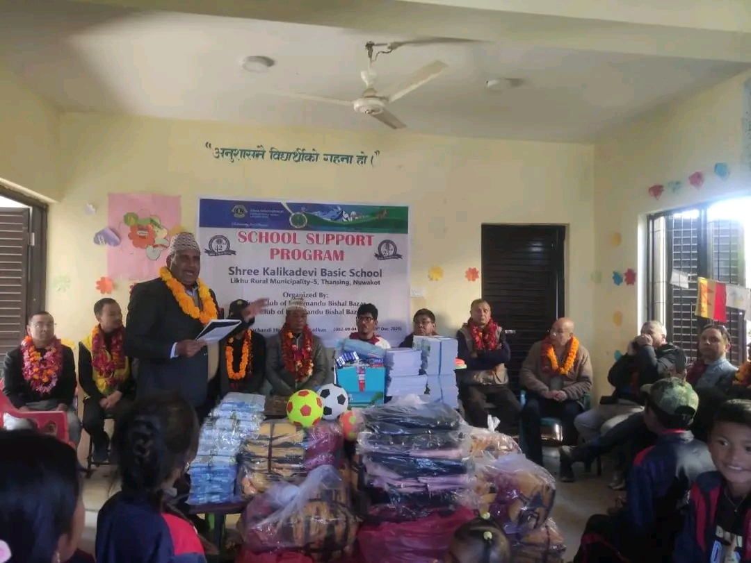 नुवाकोट,पुस ७। “सेवानै धर्म हो” भन्ने भावनाका साथ लायन्स क्लब विशाल बजार र लियो क्लब विशाल बजारको सहयोगमा लिखु गाउँपालिका–५ स्थित कालिकादेवी आधारभूत विद्यालयमा अध्ययनरत बालिकालाई शैक्षिक सामग्री, झोला तथा न्यानो कपडा वितरण गरिएको छ ।