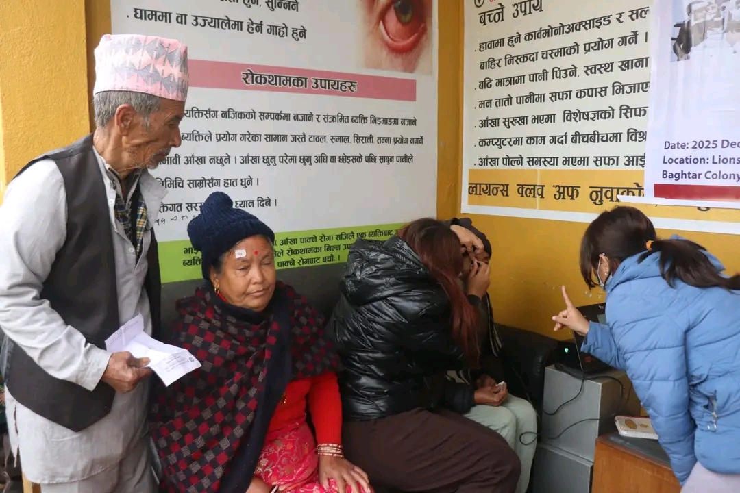 बाघटार कोलनीमा निःशुल्क आँखा स्वास्थ्य तथा मोतियाबिन्दु शल्यक्रिया शिविर सञ्चालन