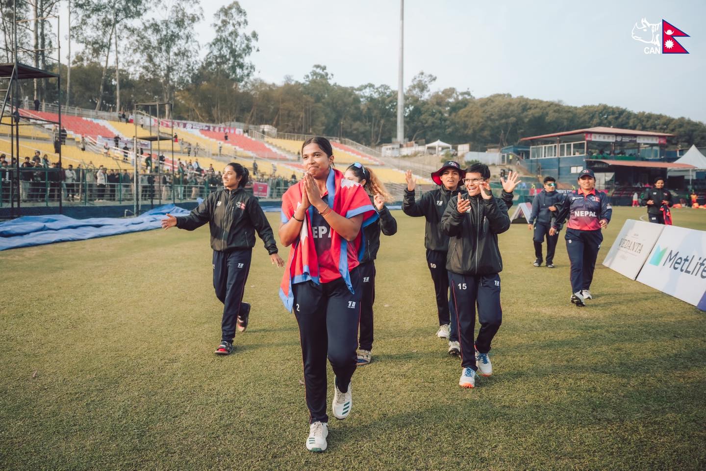 किर्तिपुरस्थित त्रिवि क्रिकेट मैदानमा १३० रनको लक्ष्य पछ्याएको नेपालले १९ दशमलव ३ ओभरमा ४ विकेटको क्षतिमा लक्ष्य पूरा गर्यो । उपकप्तान पूजा महतोले नटआउट ५२ रन बनाइन् ।