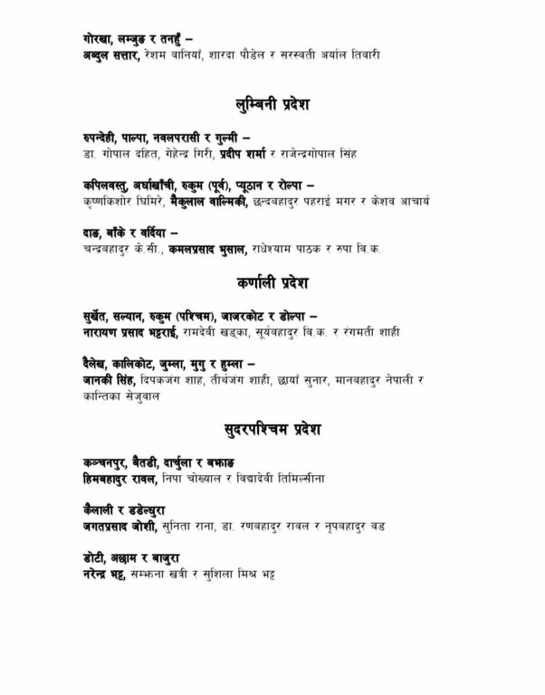 यस्तो छ प्रदेशगत रुपमा खटाइएका नेताहरुको विवरण