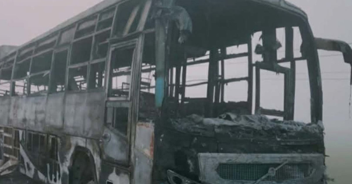 काठमाडौंबाट सुर्खेत जाँदै गरेको बस कपिलवस्तुमा जलेर नष्ट, ४४ यात्रु सकुशल