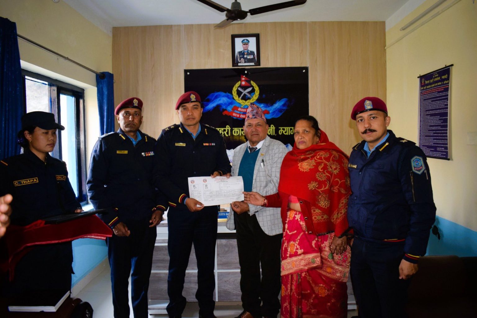 भगवतीका राज गिरीले तीन रोपनी जग्गा राखु भगवति प्रहरी चौकीलाई उपलब्ध गराउनुभएको हो । सरकारी दररेट अनुसार करिब १४ लाख रुपैयाँ मूल्य कायम भएको जग्गा स्थानीय बजारभाउमा सोभन्दा बढीपर्ने जिल्ला प्रहरी कार्यालय म्याग्दीका प्रहरी नायब उपरीक्षक सूर्यबहादुर थापाले बताउनुभयो ।
