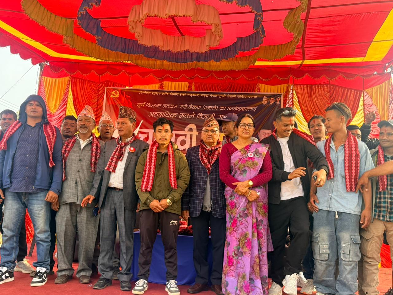 शनिबार सदरमुकाम बट्टारमा आयोजित चुनावी सभामा नेपाली कम्युनिष्ट पार्टीबाट सन्तोष बोगटी, आश्विन खड्का, दीपेन्द्र पुडासैनी, अजय बस्नेत, प्रभात बोगटी, अनिश भुजेल, निषान थापा, मनिष तामाङ, सुवास घले र लक्की घले एमालेमा प्रवेश गरेका हुन्।उनीहरूलाई एमालेका पूर्व पोलिटब्युरो सदस्य तथा पूर्व मन्त्री महेन्द्र बहादुर पाण्डेले खादा लगाएर पार्टीमा स्वागत गरे।