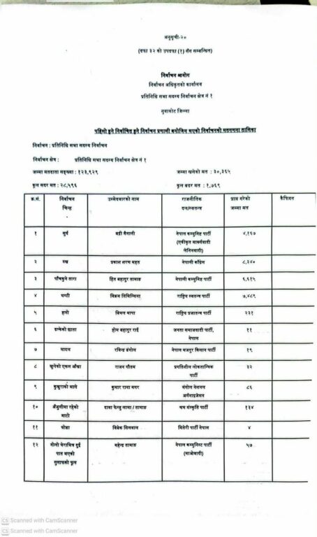 यसैगरी नेपाल कम्युनिस्ट पार्टीका उम्मेदवार हितबहादुर तामाङले तारा चिन्हमा ६ हजार ६ सय १५ मत प्राप्त गरेका छन् भने नेकपा (एमाले) का उम्मेदवार बद्री मैनालीले सूर्य चिन्हमा ४ हजार १ सय ६७ मत प्राप्त गरेका छन्।