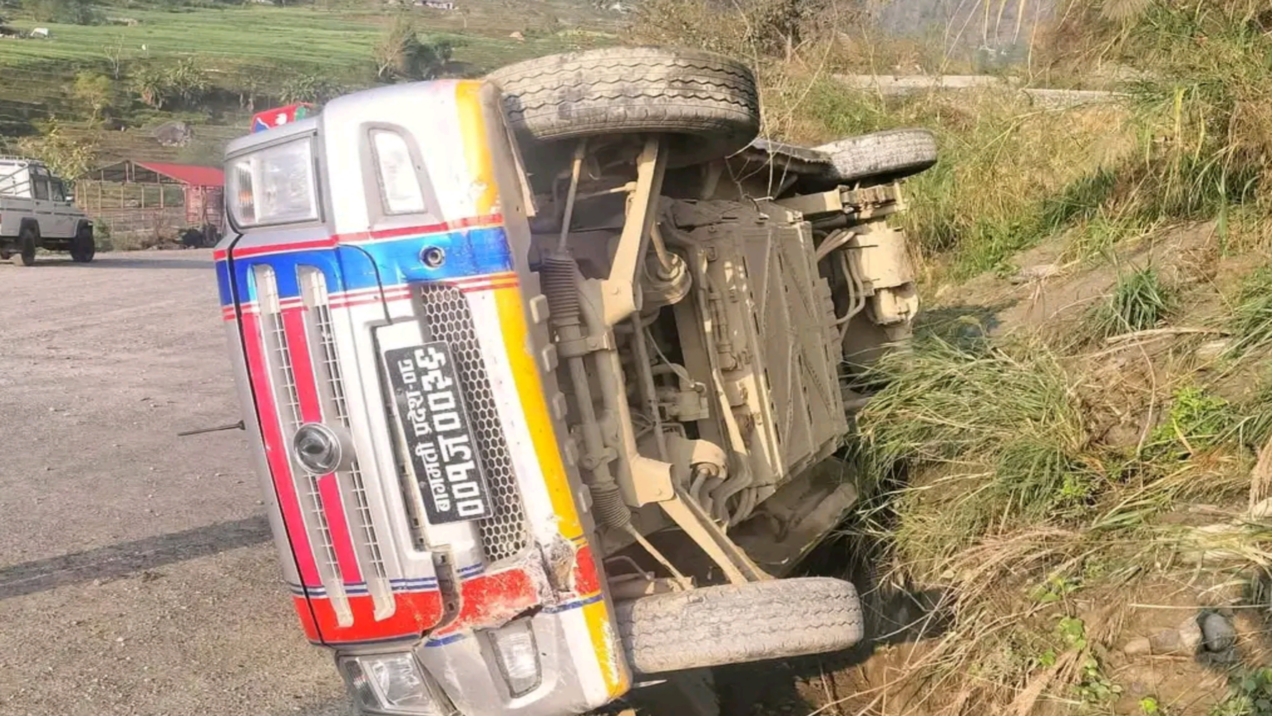 बागमती प्रदेश ०८ बा ००१ ज ००३६ नम्बरको सो गाडी दुर्घटनामा परेको हो।