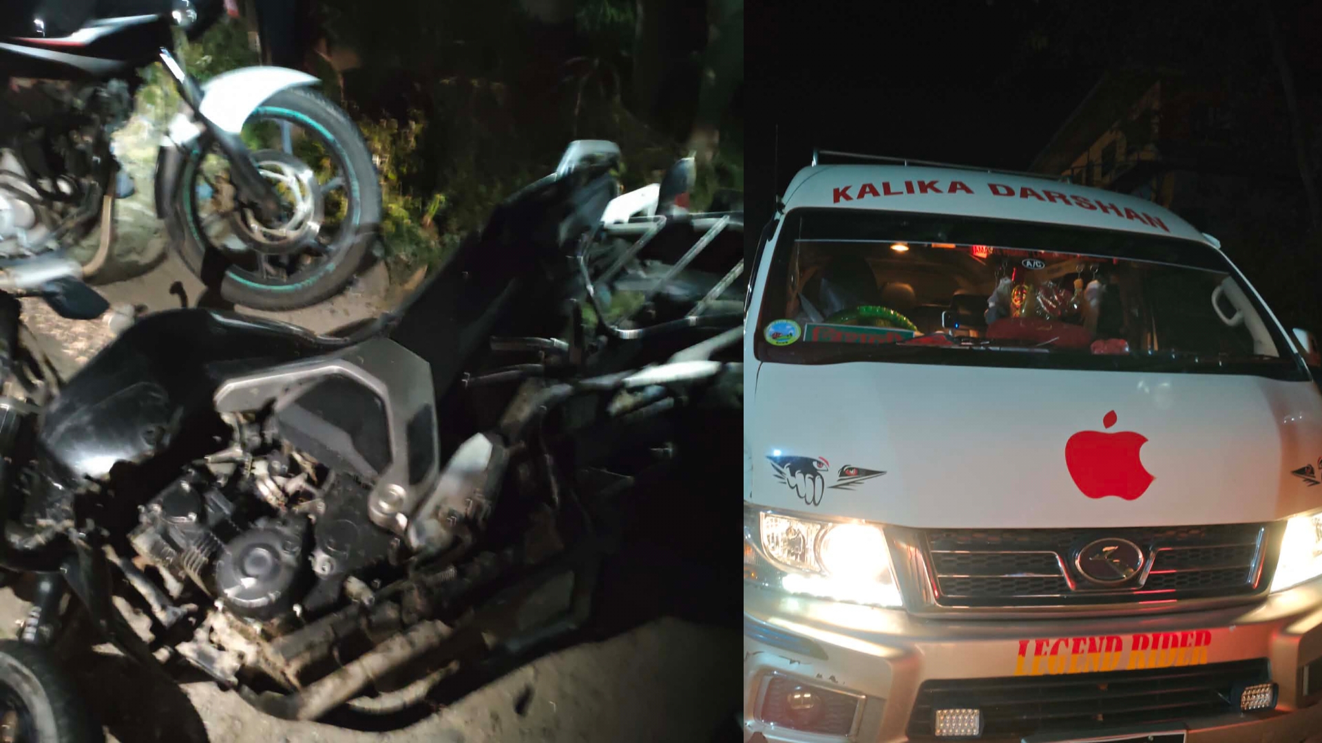 शुक्रबार बेलुकी करिब ७:३० बजे काठमाडौबाट त्रिशुलीतर्फ जादै गरेको बागमती प्रदेश ०१–००६ ख ९१५१ नम्बरको विद्युतीय गाडी र मधेस प्रदेश ००६ प ३८७७ नम्बरको मोटरसाइकल एकआपसमा ठोक्किँदा दुर्घटना भएको हो।