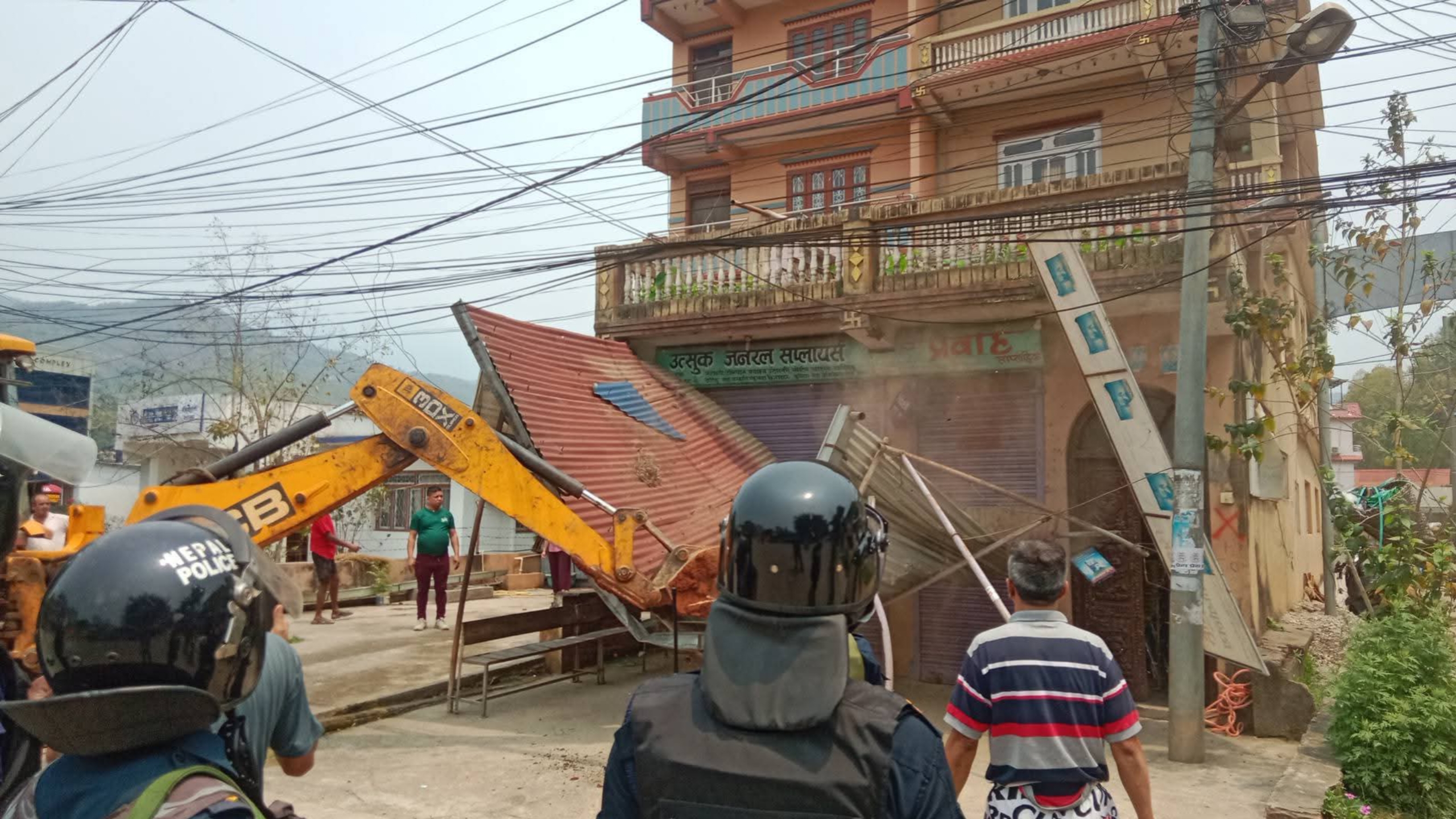 आयोजनाका अनुसार शनिबार पहिलो चरणमा क्षतिपूर्ति रकम बुझिसकेपछि पनि तोकिएको समयभित्र आफ्ना घर तथा टहरा नभत्काउने व्यक्तिहरूका संरचना हटाइएको हो। सडक विस्तार कार्यलाई तीव्र बनाउन अटेर गर्ने संरचनामा कारबाही गरिएको आयोजनाले जनाएको छ।