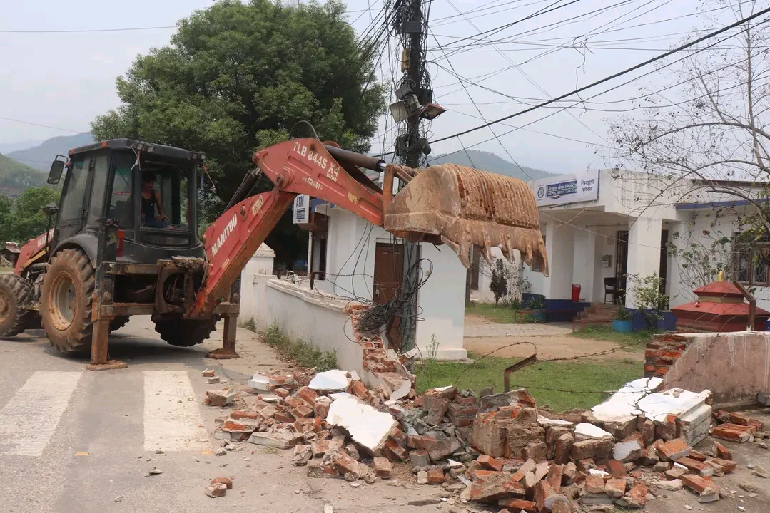 अतिक्रमणमा बनेका संरचना हटाउन डोजर, नुवाकोटमा बल प्रयोग