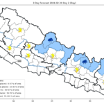 काठमाडौँ,फागुन ८- हाल देशमा पश्चिमी न्यून चापीय प्रणालीको प्रभाव रहेको मौसम पूर्वानुमान महाशाखाले जनाएको छ । साथै तराईका केही स्थानमा हुस्सु लागेको छ । कोशी, बागमती र गण्डकी प्रदेशका हिमाली भागमा साधारणतया