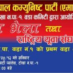 काठमाडौ,भदौ ११। नेपाल कम्युनिस्ट पार्टी एमाले टोखा नगरपालिका वडा नम्बर १ को युवा भेला भोलि शनिबार हुने भएको छ। परिवर्तित राजनैतिक घटनाक्रम अनुसार एमालेले युवा भेलाको तयारी गरिएको बुझिएको छ।भेला