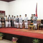काठमाडौं,चैत १७ । नवनियुक्त मन्त्रीहरुले पद तथा गोपनियताको शपथ लिएका छन् । शुक्रबार राष्ट्रपति भवन शितल निवासमा राष्ट्रपति रामचन्द्र पौडेलले नवनियुक्त मन्त्रीहरुलाई शपथ गराएका हुन् । प्रधानमन्त्रीले कांग्रेस, एकीकृत समाजवादी,