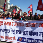 काठमाडौं,कात्तिक २२— राजावादी संगठन शाही युवाशक्ति नेपाल केन्द्रीय समितिले ‘जेनजी पुस्ता, जनता र राजा एक हौं, देश बचाऔं’ भन्ने मुख्य नारासहित राजधानीमा प्रदर्शन गरेको छ। शनिबार सामाखुसीबाट सुरु गरिएको र्याली