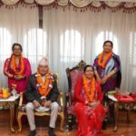 काठमाडौं,कात्तिक ६ । राष्ट्रपति रामचन्द्र पौडेलले बहिनीहरू शारदा पण्डित र चन्दा ओझाको हातबाट शुभसाइतमा यस वर्षको तिहारको टीका लगाउनुभएको छ । राष्ट्रपति पौडेलले आज राष्ट्रपति भवन शितलनिवासमा ११ः३९ बजेको शुभसाइतमा