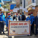 पाल्पा,वैशाख ११ । जिल्लाका प्रमुख जिल्ला अधिकारी सहितकाे टाेलीले शुक्रबार तानसेन बजार परिक्रमा गरेर सर्वसाधारणलाइ मास्क वितरण गरेकाे छ । कोभिड १९ विरुद्ध जनचेतना जगाउने तथा स्वास्थ्य मापदण्ड पालना गराउने