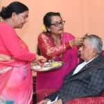 काठमाडौ,कात्तिक १८ । प्रधानमन्त्री केपी शर्मा ओलीले बहिनीहरु विष्णुमाया ढकाल, कौशिला कोइराला र विष्णु ओलीको हातबाट शुभसाइतमा टीका लगाएका छन् । प्रधानमन्त्री ओलीले आज बालुवाटारस्थित सरकारी निवासमा बहिनीहरुबाट भाइटीका लगाएको