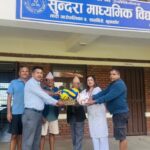 नुवाकोट, असोज १० । नुवाकोट जिल्लाको तादी गाउँपालिका–४ सातविसेस्थित सुन्दरा माध्यमिक विद्यालयलाई आज खेलकुद सामग्री सहयोग हस्तान्तरण गरिएको छ। विद्यालयकी भूपू विद्यार्थी बन्दना पाठक थपलिया र उनका श्रीमान् जगदिश्वर थपलियाले