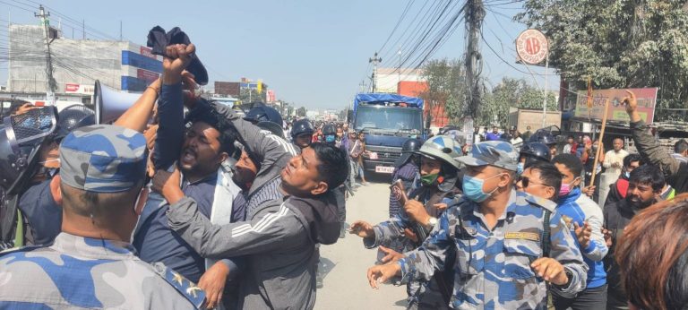 विराटनगर,फागुन ८ । विराटनगरमा शनिबार आफ्नो समुहले गर्न लागेको शक्ति प्रदर्शनलाई संवोधन गर्न त्यहाँ पुगेका प्रधानमन्त्री केपी शर्मा ओलीलाई विमानस्थल बाहिर प्रचण्ड माधव समुहका युवाहरुले कालो झण्डा देखाएका छन् ।