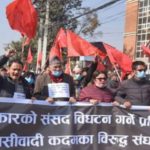 काठमाडौं पुस १९ । प्रधानमन्त्री केपी शर्मा ओलीले गरेको संसद विघटनविरुद्ध २३ दलीय मोर्चाले विरोध प्रदर्शन गरेका छन् । संसद विघटन असंवैधानिक भन्दै मोहन वैद्य किरण नेतृत्वको नेपाल कम्युनिस्ट पार्टी