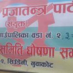 दिलबहादुर लामा,फागुन-८।राप्रपा(संयुक्त)ले अाज नुवाकोटको ककनीमा आफ्नो संगठन विस्तार गरेको छ। गाउपालिका को वडा नं १,२ र ३ मा अाफ्नो संगठन विस्तार गरेको हो।पार्टीका केन्द्रीय अध्यक्ष डा प्रकाशचन्द्र लोहनी ज्यु को